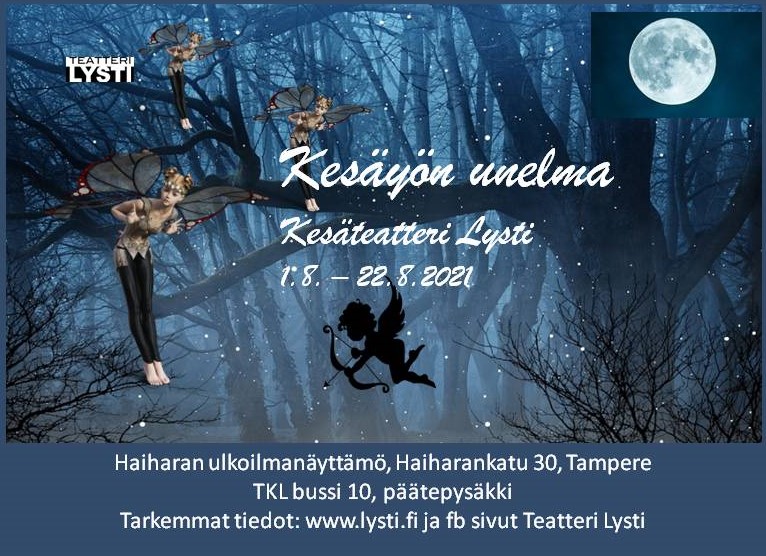 1.7.20211.7.2021Uutiset Sirkuslaisia Teatteri Lystin Kesäyön unelma -näytelmässä Hervantalainen harrastajateatteri Lysti tekee Haiharan ulkoilmanäyttämölle Shakespearen Kesäyön unelman elokuussa 2021. Mukana […]