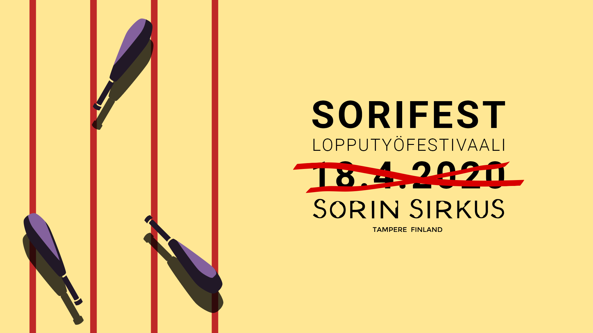 Koronaviruksen (covid-19) leviämisen ehkäisemiseksi määrättyjen rajoitus- ja sulkutoimien vuoksi Sorin Sirkuksen taiteen perusopetus jatkuu poikkeusjärjestelyin 13.5.2020 saakka. Tilanteesta johtuen Sorifest on peruttu. Tapahtuma oli suunniteltu järjestettäväksi lauantaina 18.4.2020, joka on samalla Maailman sirkuspäivä. Vaihtoehtoisia ajankohtia lopputyöesitysten järjestämiselle selvitetään ja niistä tiedotetaan erikseen myöhemmin.