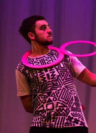 Yhdysvaltalaisen Tony Pezzon ensimmäisen päivän esitys koostui useasta numerosta. Hän aloitti yhdistämällä kolmen pallon jongleerausta sekä steppausta, jonka jälkeen hän siirtyi devilstickkiin. Devilstickillä Pezzo oli luonut uusia ja ovelia temppuja. Oli hienoa nähdä jonglöörin työstävän myös tätä välinettä. Devilstickin jälkeen kolmantena oli vuorossa ns. color change rings, eli jongleerausrenkaat, joissa on kaksi eriväristä puolta. Niillä Tony esitti hienoja värinvaihtotemppuja. Pezzon esitys päättyi Circus Ruska Festivalillakin nähtyyn pätkään, jossa hän yhdisteli haaveja ja palloja. Hän oli luonut todella hienoja temppuja ja kyllä huomasi, että hän oli onnistunut hyödyntämään haaveja pallojen kanssa.
