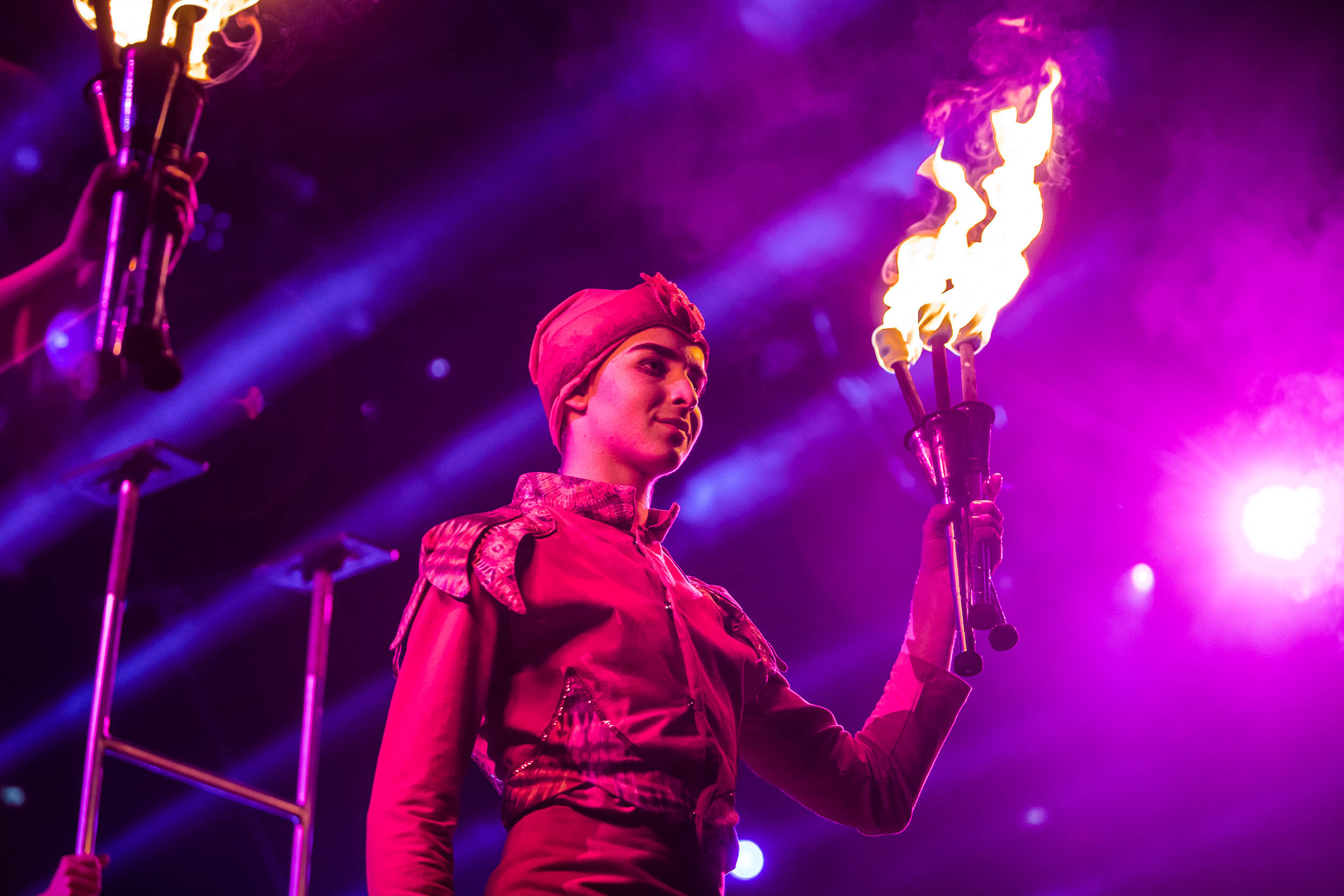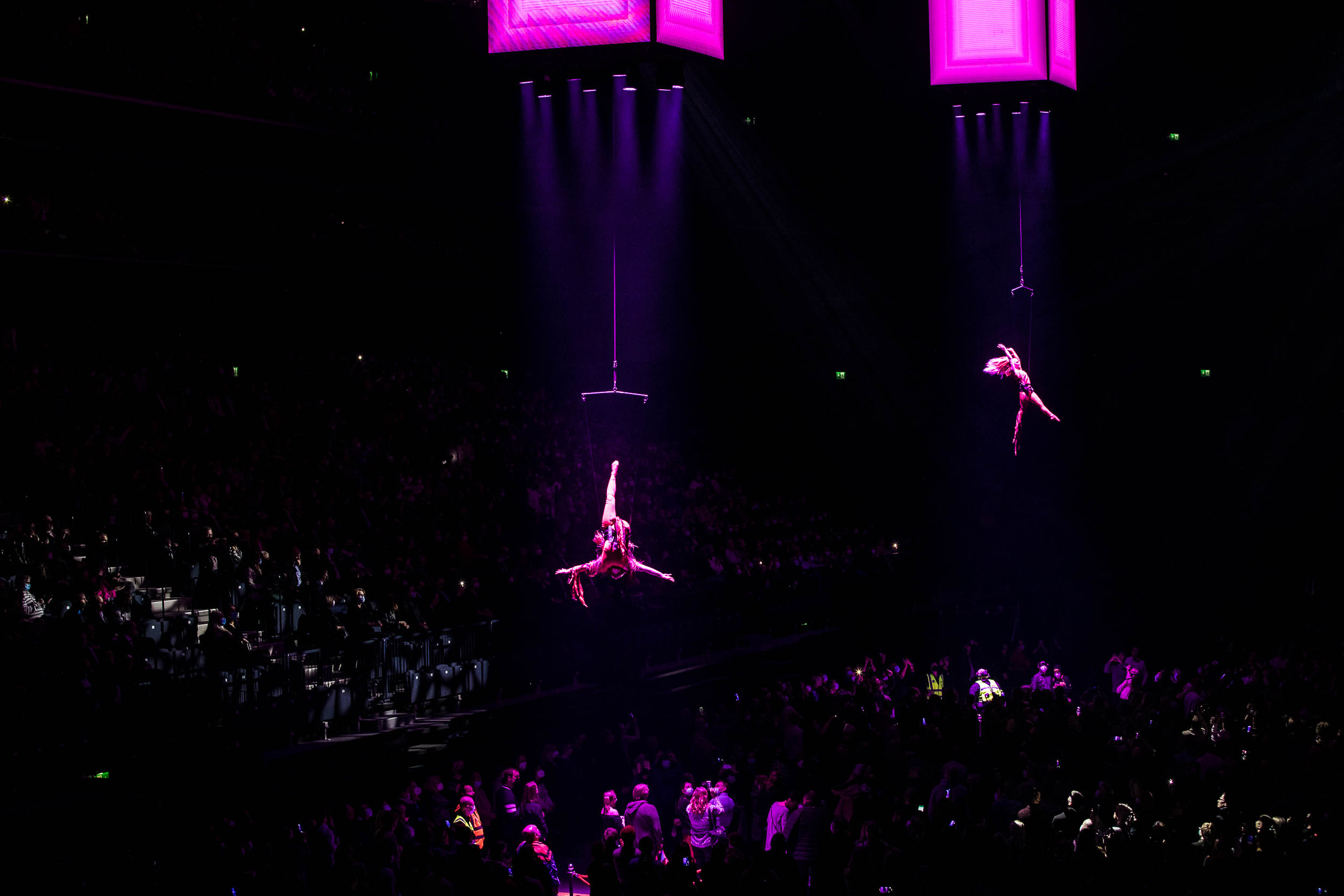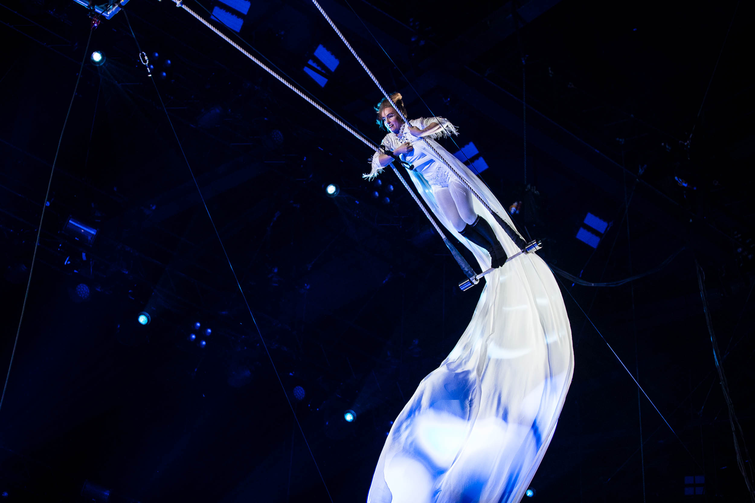 Avausnumerossa yhdistyivät Takomon musiikki ja energinen show, jossa Sorin Sirkuksen esiintyjät esittelivät taitojaan akrobatiassa, cyr-renkaalla, ilma-akrobatiassa (keinutrapetsi ja valjasakrobatia eli nk. coat hanger tai harnish work), jongleerauksessa sekä tikas- ja tulinumeroissa. Sorin Sirkukselta oli Nokia-areenan avajaisissa mukana yli 20 esiintyjää, joiden tukena työskenteli yli kymmenen hengen tuotantotiimi.
